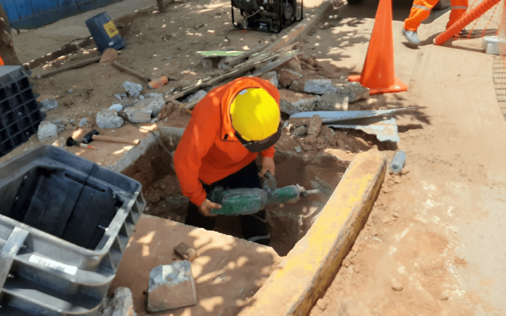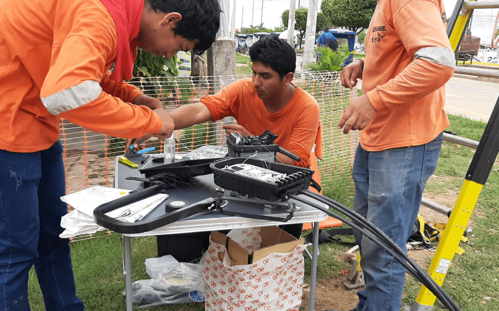 Tendido de fibra óptica (Tecnología GPON) aéreo en postes y mediante microperforado a nivel del suelo.